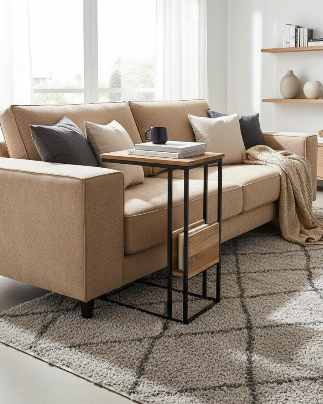 Bijzettafel Britt voor over de bank | Mangohout en Staal | 45x29x69cm