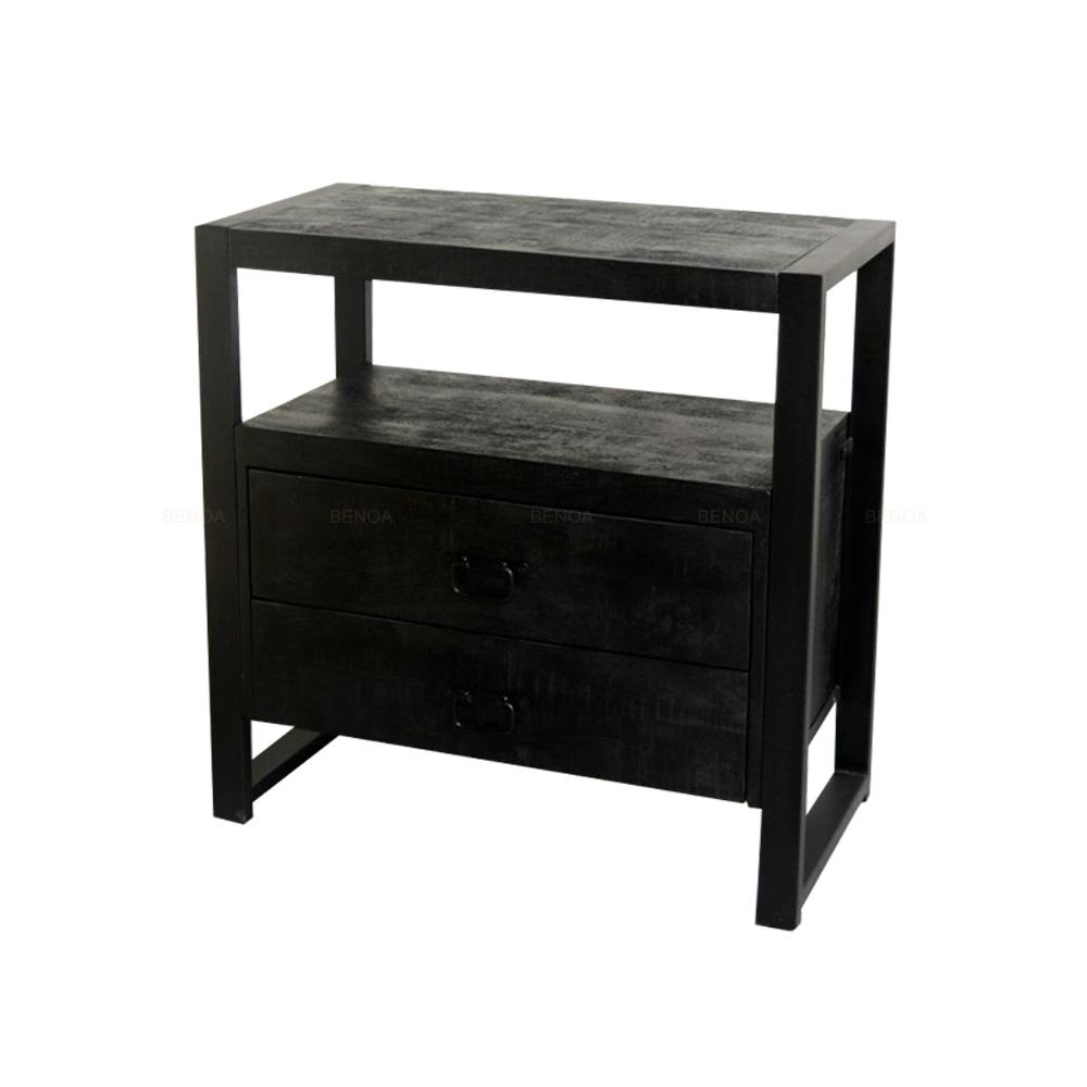 Sidetable / Dressoir Kastje 2 lades Industrieel Design | Zwart Mangohout en Staal | 80x40x80cm - Industrieelinhuis.nl