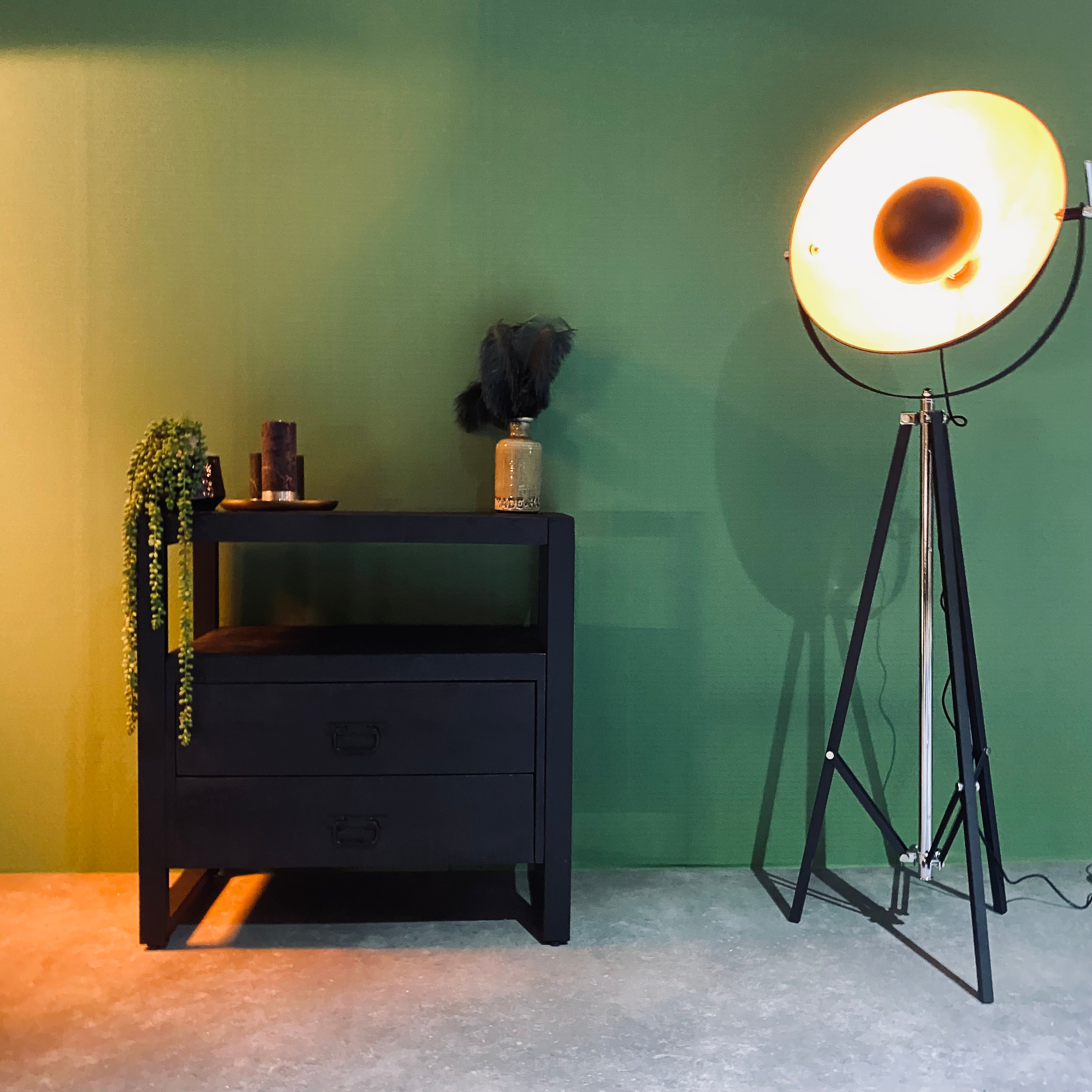 Zwart mangohouten kastje met 2 lades | Zwart Mangohout en Staal | 80x40x80cm